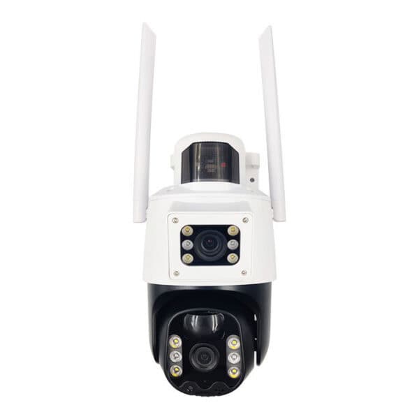 [Dual Lens and Dual Screen]The camera has two lenses, the upper lens is fixed, and the lower lens can rotate, perfectly achieving one camera to monitor two directions. In the APP, dual screen display of monitoring images
